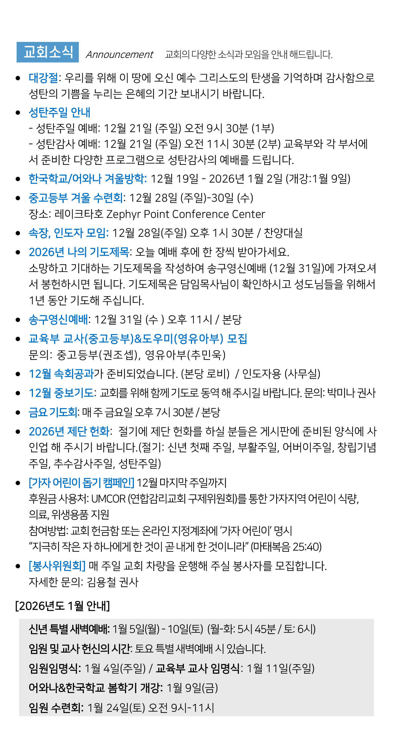[주보] 2025년 12월 14일 페이지 정보 작성자 Office 댓글 0건 조회 176회 작성일 25-12-12 14:31 목록 본문 첨부파일 12-14-2025 주보.pdf (1.9M) 2회 다운로드 | DATE : 2025-12-12 14:31:36 다음글[주보] 2025년 12월 7일 25.12.05 목록 댓글 0 댓글목록 등록된 댓글이 없습니다.