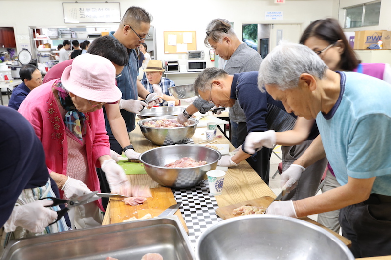 불고기를 볶고, 닭고기 BBQ를 하고,  다른 음식 준비 ( 감자 샐러드, 채소, 수박)와  Serving setting을 완료하여,  Pomo사람들과 어울려 음식을 나누었습니다.